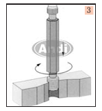 5、沖斷安裝柄  通孔時,要將絲套安裝柄沖斷,一般用沖斷器對準安裝柄,用200g左右的榔頭猛擊一下即可去除,對于18×2.5以上的粗牙絲套和14×1.25以上的細牙絲套,用尖嘴鉗上下彎曲安裝柄就可去除。