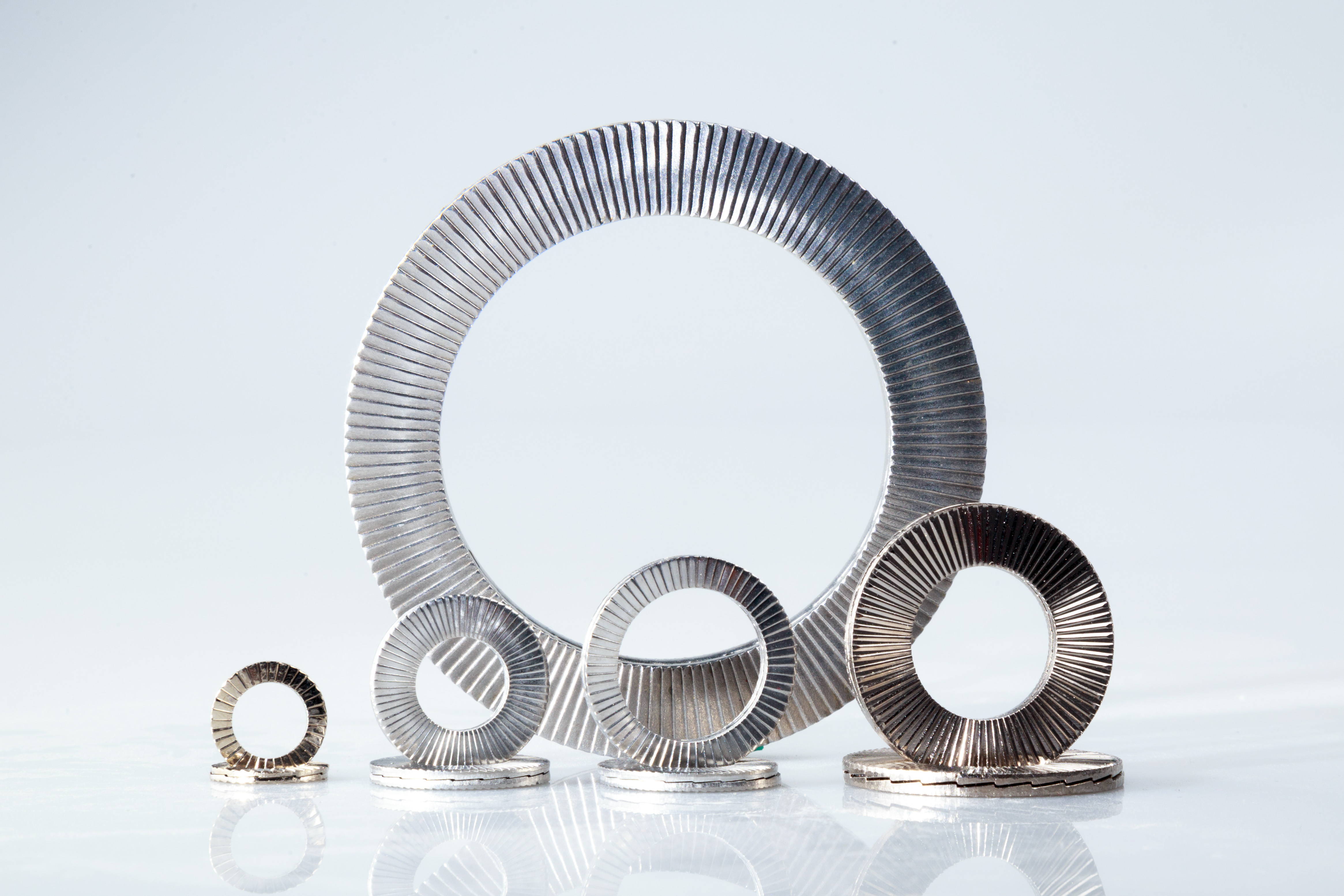 雙疊自鎖(鎖緊)墊圈DIN25201是由兩片內齒面咬合組成,外側帶有放射狀的斜細面齒紋,內側為大角度斜齒面。斜齒面的角度大于螺紋角度,當連接件受到振動,螺栓連接會隨著持續振動發生松動趨勢,僅允許墊圈內側的斜齒面會產生相對錯動,產生抬升張力,從而達到完全的防松效果。雙疊自鎖(鎖緊)墊圈利用幾何原理,安全鎖緊處于強烈振動的螺栓連接。 有以下幾個優點: a.最高的安全性能? …