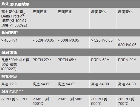ANDI-LOCK墊圈的可選材料如下: